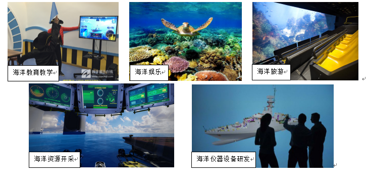 由于海洋自身特殊自然条件,给海洋的开发与研究带来很大的困难,VR虚拟现实技术同样可以辅助海洋产业的创新与开拓,未来海洋产业中也将可能广泛地引入VR的应用。