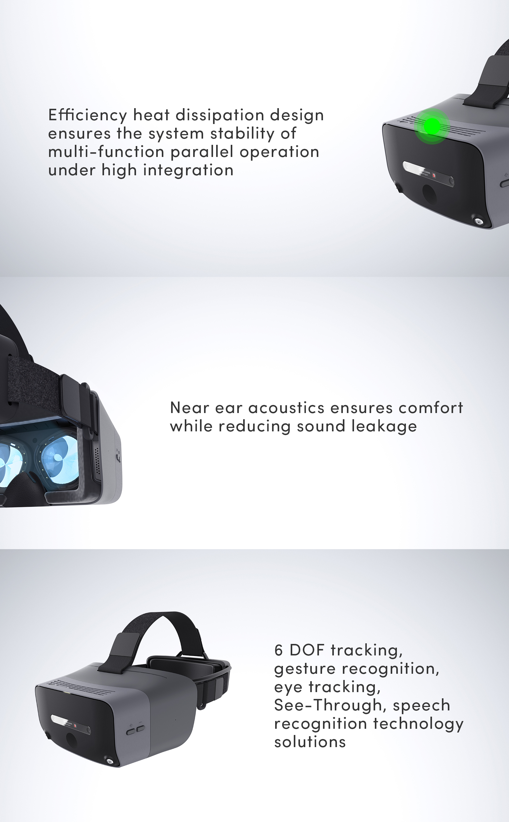 ■ 6 DOF tracking, gesture recognition, eye tracking, See-Through, speech recognition, AM3D Sound effect and other modular technology solutions